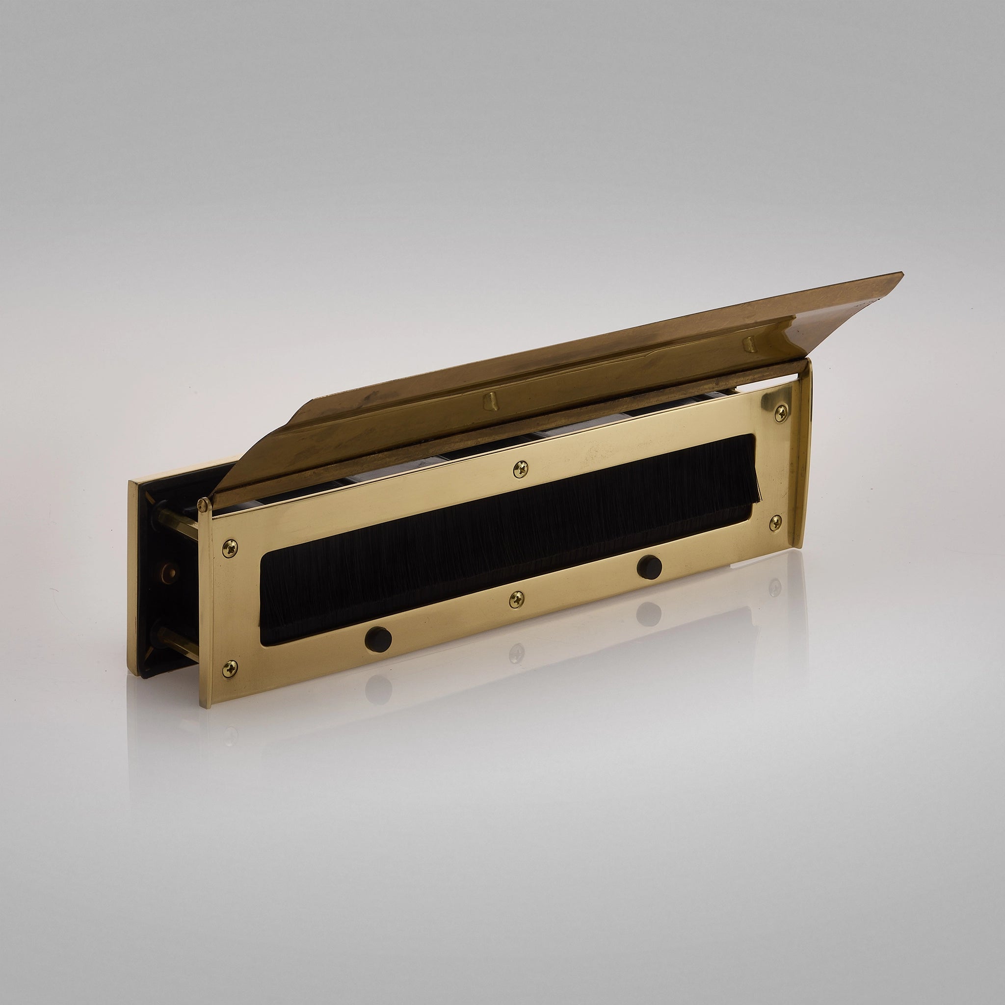 The Hardwick Classic Sleeved Letterbox with "LETTERS" embossed is a premium piece of finest brassware.  The Hardwick letterplate is a perfect solution for timber doors because it creates a fully sealed opening whilst retaining traditional styling.  4x bolt through fixings keeps the letterbox secure on the door.